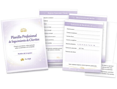 Modelos personalizables para registrar la energía e intenciones del cliente. Simple, práctico y con apariencia profesional.