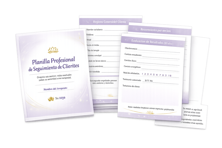 Un paquete completo de materiales listos, creados especialmente para terapeutas que desean, transforma tus sesiones de Reiki en experiencias profesionales que tus clientes recordarán.